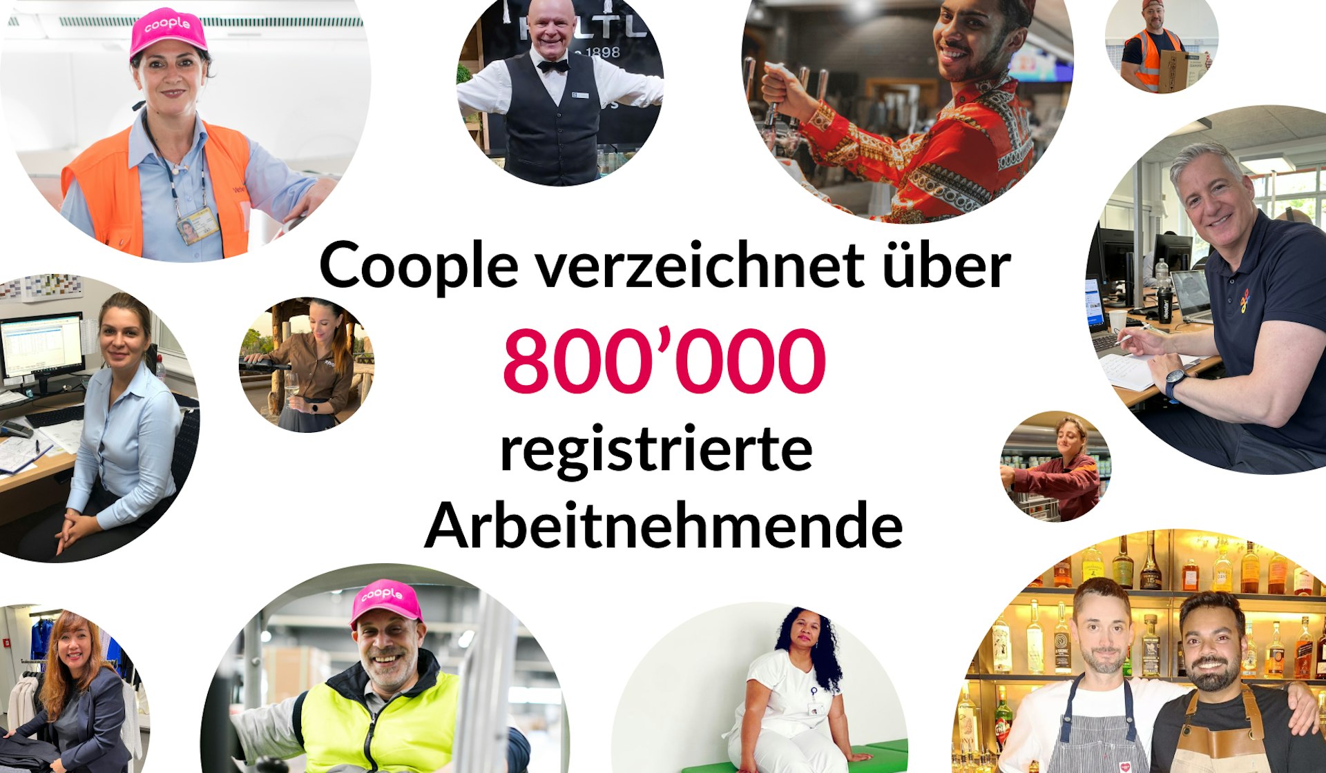 Mit über 800’000 registrierten Arbeitnehmenden kann Coople Unternehmen noch besser bei der flexiblen Besetzung von Einsätzen unterstützen – schnell, zuverlässig und rund um die Uhr. Für Arbeitnehmende bedeutet die Plattform weiterhin: mehr Freiheit, mehr Möglichkeiten und mehr Selbstbestimmung.