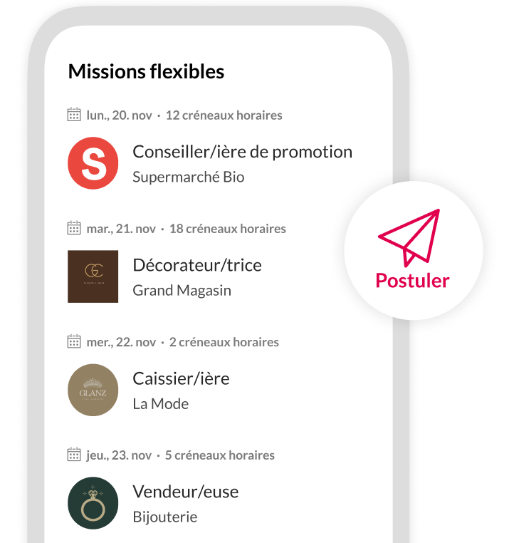 Sur Coople, accédez à de nombreuses missions en tant que conseiller·ère de vente, coursier·ère ou caissier·ère.