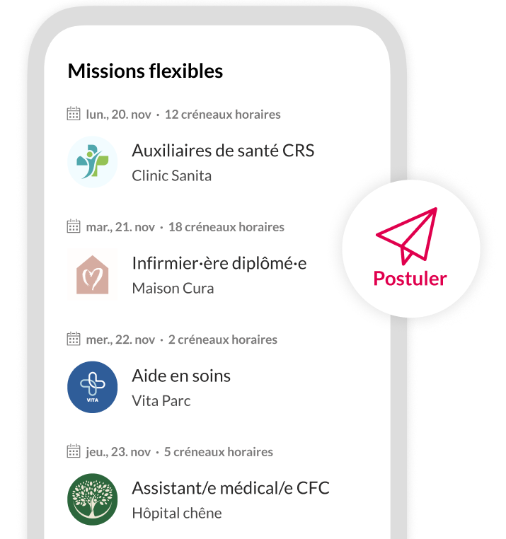 Vous avez ainsi la possibilité de travailler à temps partiel dans un hôpital, une clinique de rééducation, un EMS ou un service d’aide et de soins à domicile. Grâce à Coople, vous trouverez des emplois temporaires passionnants et épanouissants qui vous aideront à atteindre vos objectifs personnels et professionnels, ou à reprendre le travail après une pause.