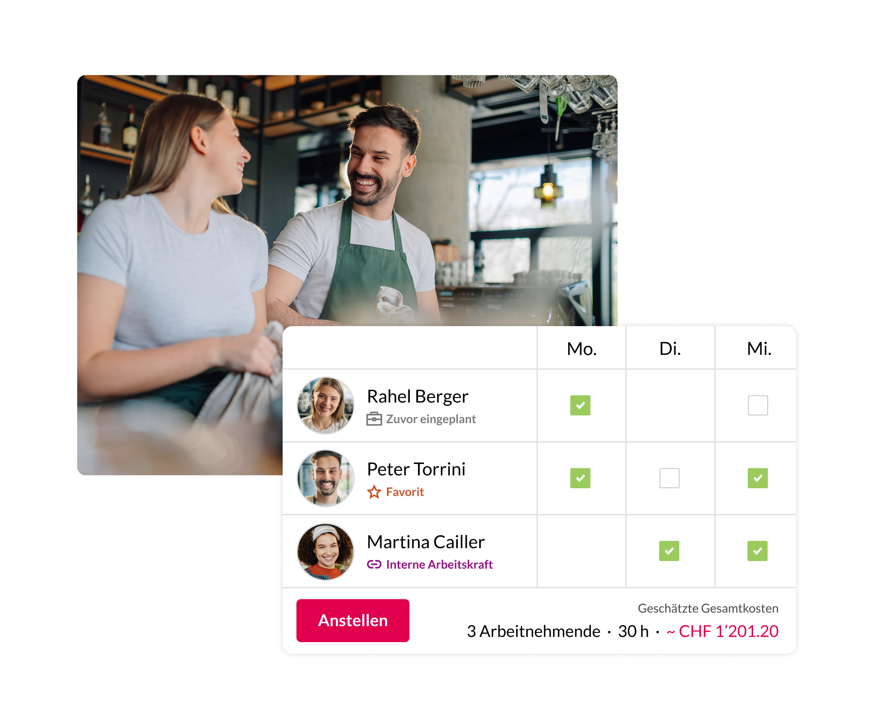 Lernen Sie potenzielle Mitarbeitende im Einsatz kennen, bevor Sie eine langfristige Anstellung eingehen.