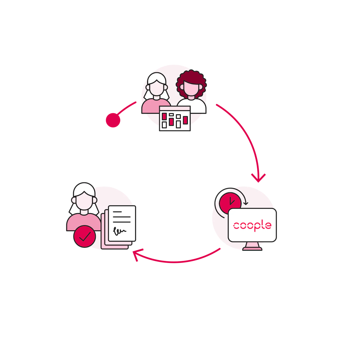 Mit Coople senken Sie Ihre Personalkosten für temporäre Mitarbeitende, indem Sie Rekrutierung, Administration und Lohnbuchhaltung auslagern. Als rechtlicher Arbeitgeber übernehmen wir alle administrativen Aufgaben für Sie.