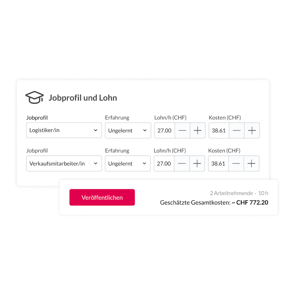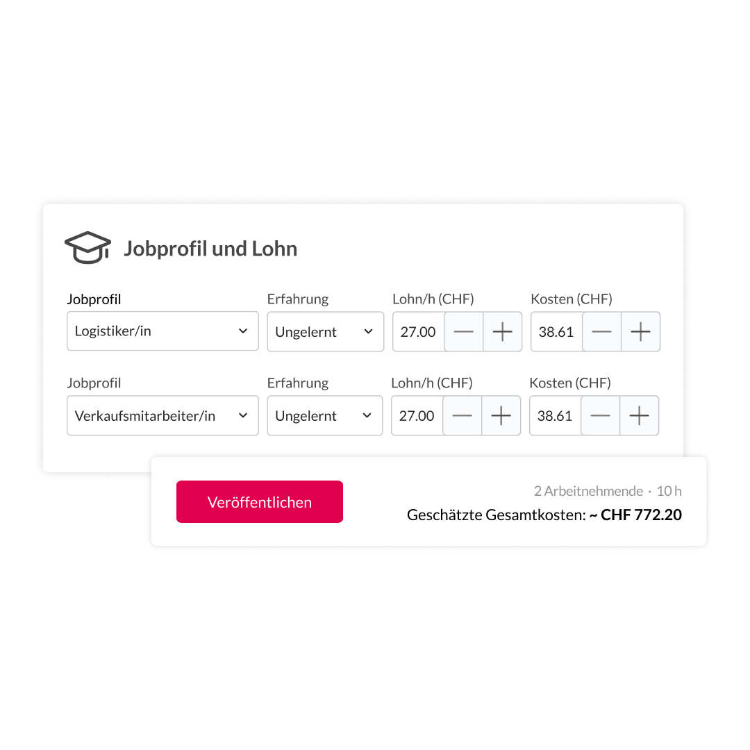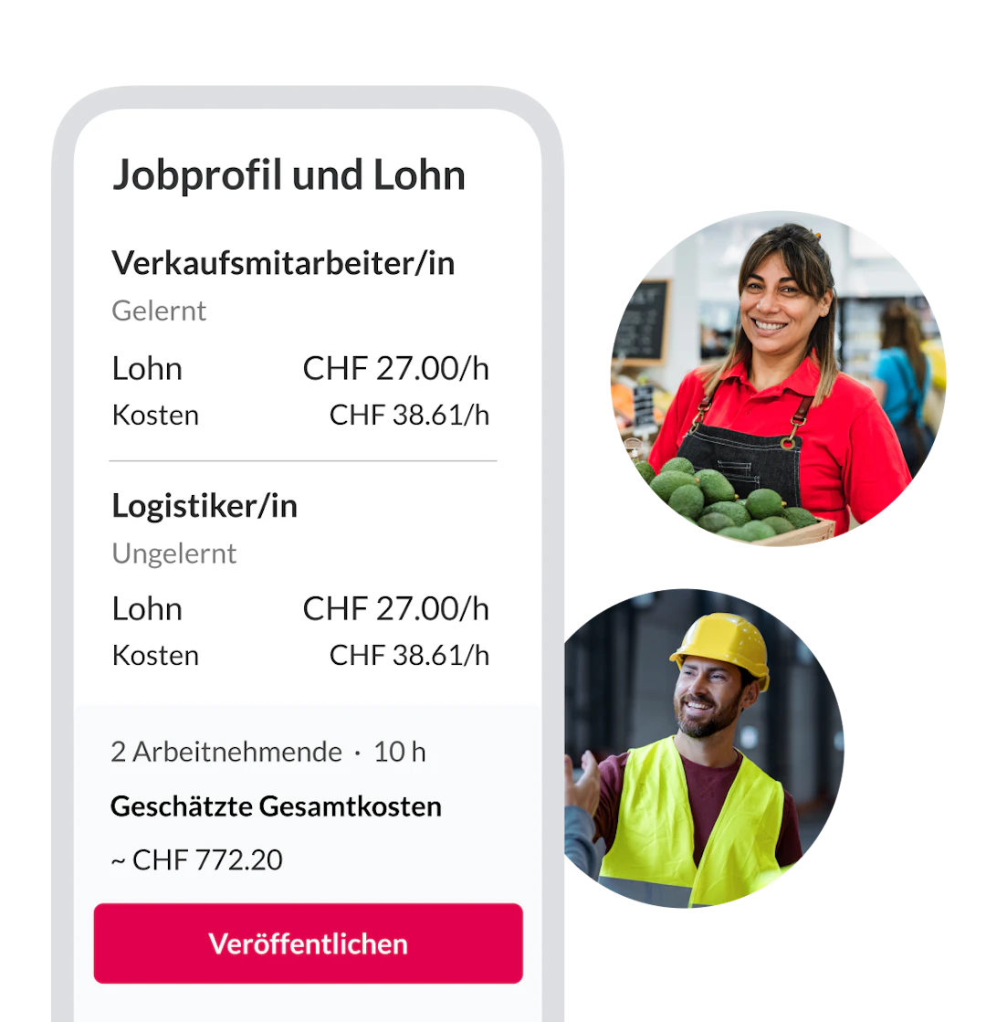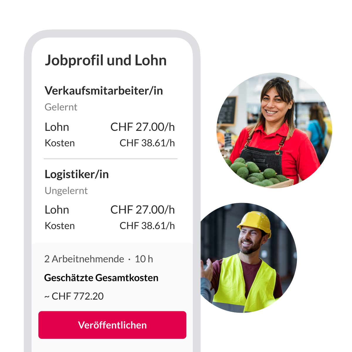 Sie können die Personalkosten für temporäre Mitarbeitende direkt in Ihrem Firmenaccount berechnen – noch bevor Sie einen Einsatz veröffentlichen.