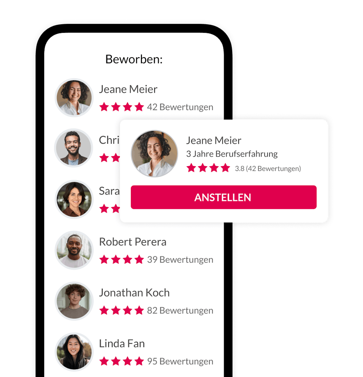 Und wenn Sie zusätzliches Personal benötigen, können Sie dieses einfach mit derselben App über unseren Personalverleih anstellen und verwalten.