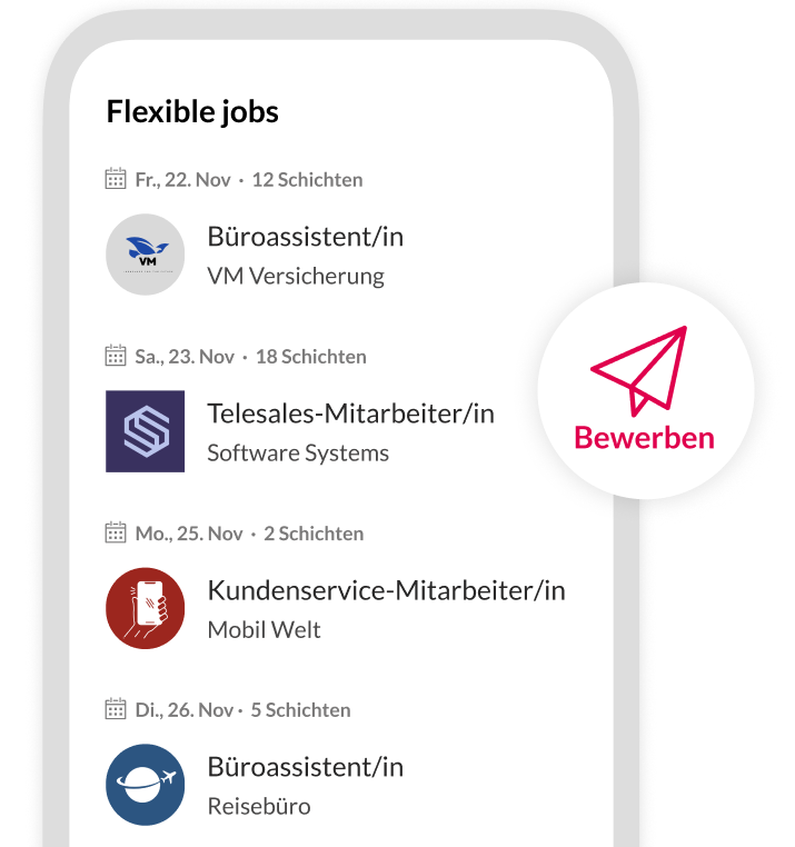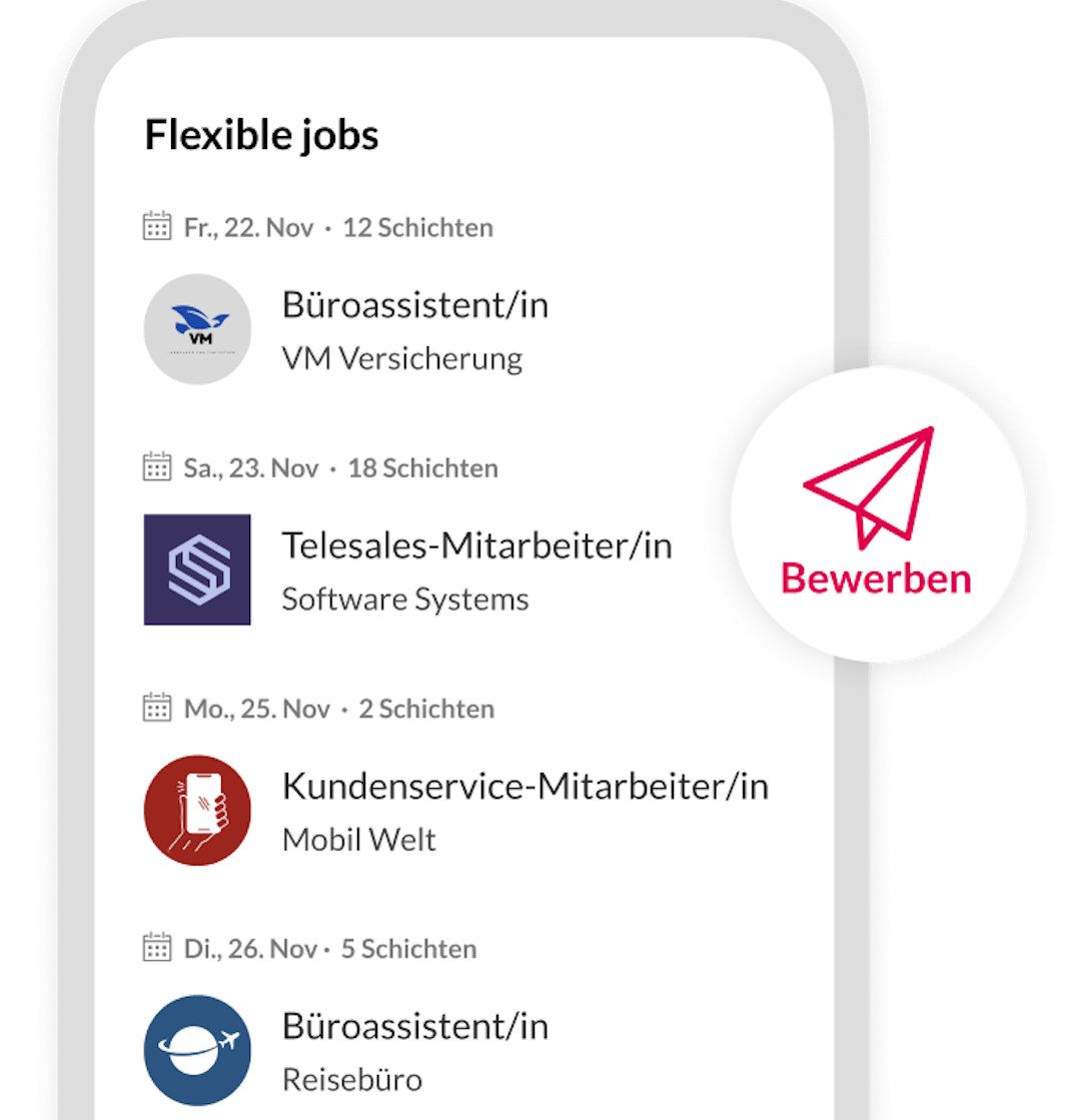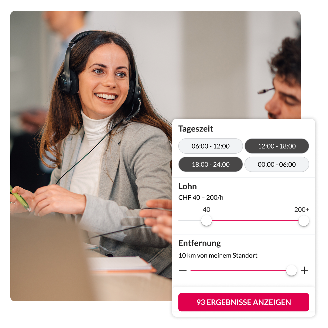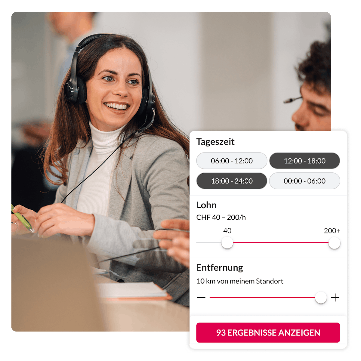 Mit Coople hast du Zugang zu einer grossen Anzahl Jobs in den unterschiedlichsten Bereichen. Möchtest du einen Job mit neuer Funktion ausprobieren, um Berufserfahrung zu sammeln und so deine Karriere voranzutreiben? Überbrückst du die Zeit zwischen zwei Festanstellungen für zusätzliches Einkommen? Kein Problem! Wir ermutigen dich, neue Karrierechancen zu erkunden und Coople Jobs zu nutzen um deine Ziele zu verfolgen. Füge möglichst alle Jobprofile, die dich interessieren und für die du qualifiziert bist, zu deinem Coople Profil hinzu. Bewirb dich anschliessend proaktiv auf interessante KV-Jobs. Lehne im Marktplatz Jobs ab, die dir nicht gefallen um deine Jobresultate zu verfeinern und genauer auf deine Interessen abzustimmen.