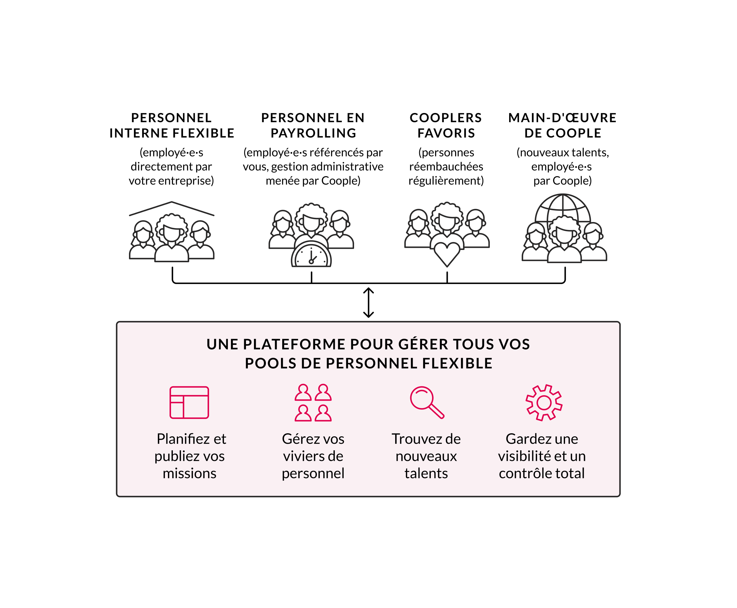 Contrairement à d'autres outils, Coople permet la gestion centralisée des travailleur·euse·s flexibles internes et externes, le tout sur une seule et même plateforme.