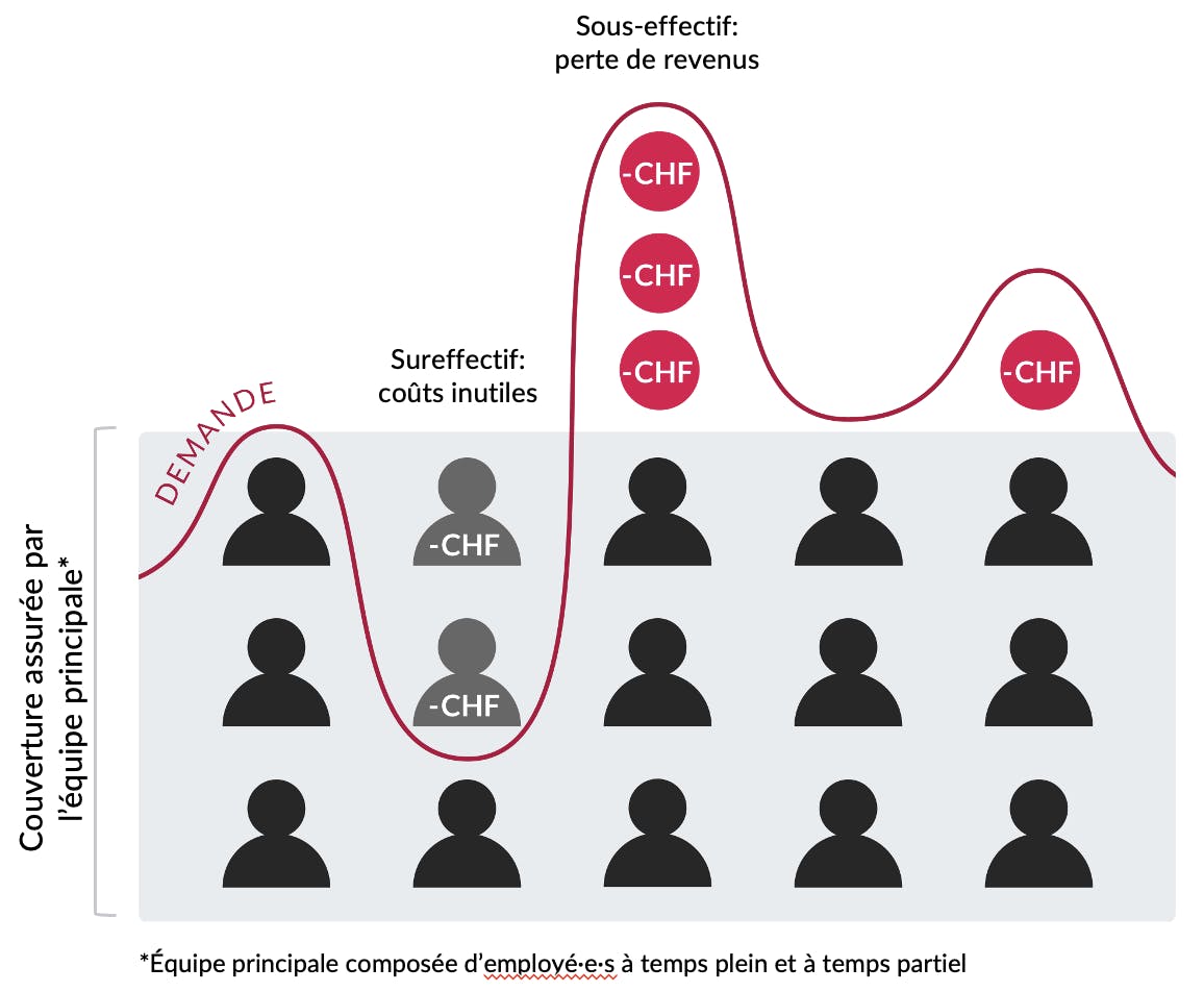 Même si les pics de demande saisonniers comme les périodes de vacances ou les lancements de produits sont prévisibles, il peut être difficile de trouver le juste équilibre en matière d'affectation du personnel.