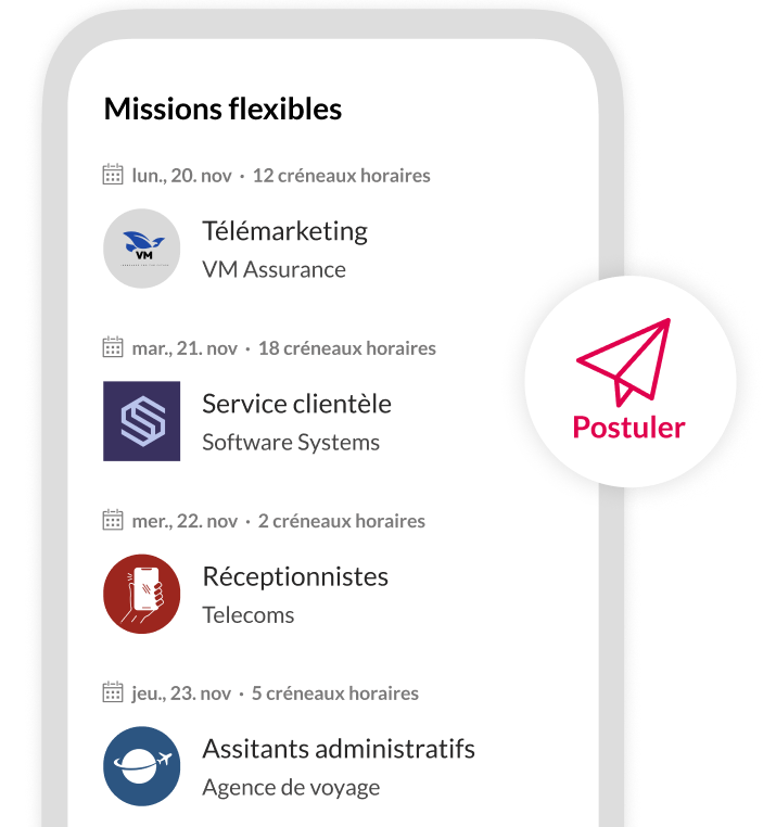 Avec Coople, accédez à de nombreuses opportunités dans l’administration, que ce soit en tant que réceptionniste, télémarketeur·trice ou assistant·e administratif·ve. Peu importe votre niveau d’expérience, nous avons besoin de vous.