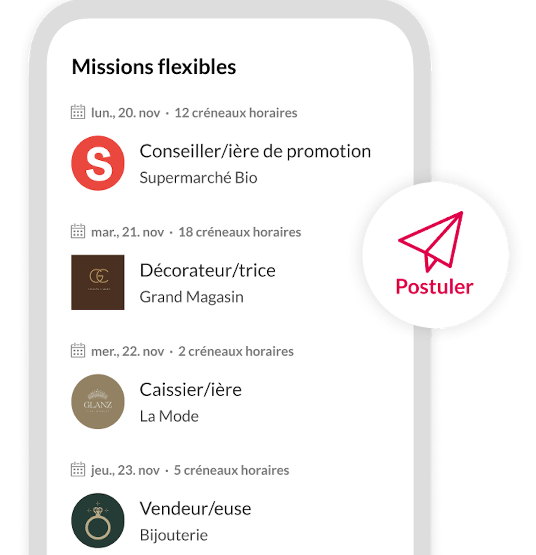 Sur Coople, accédez à de nombreuses missions en tant que conseiller·ère de vente, coursier·ère ou caissier·ère.