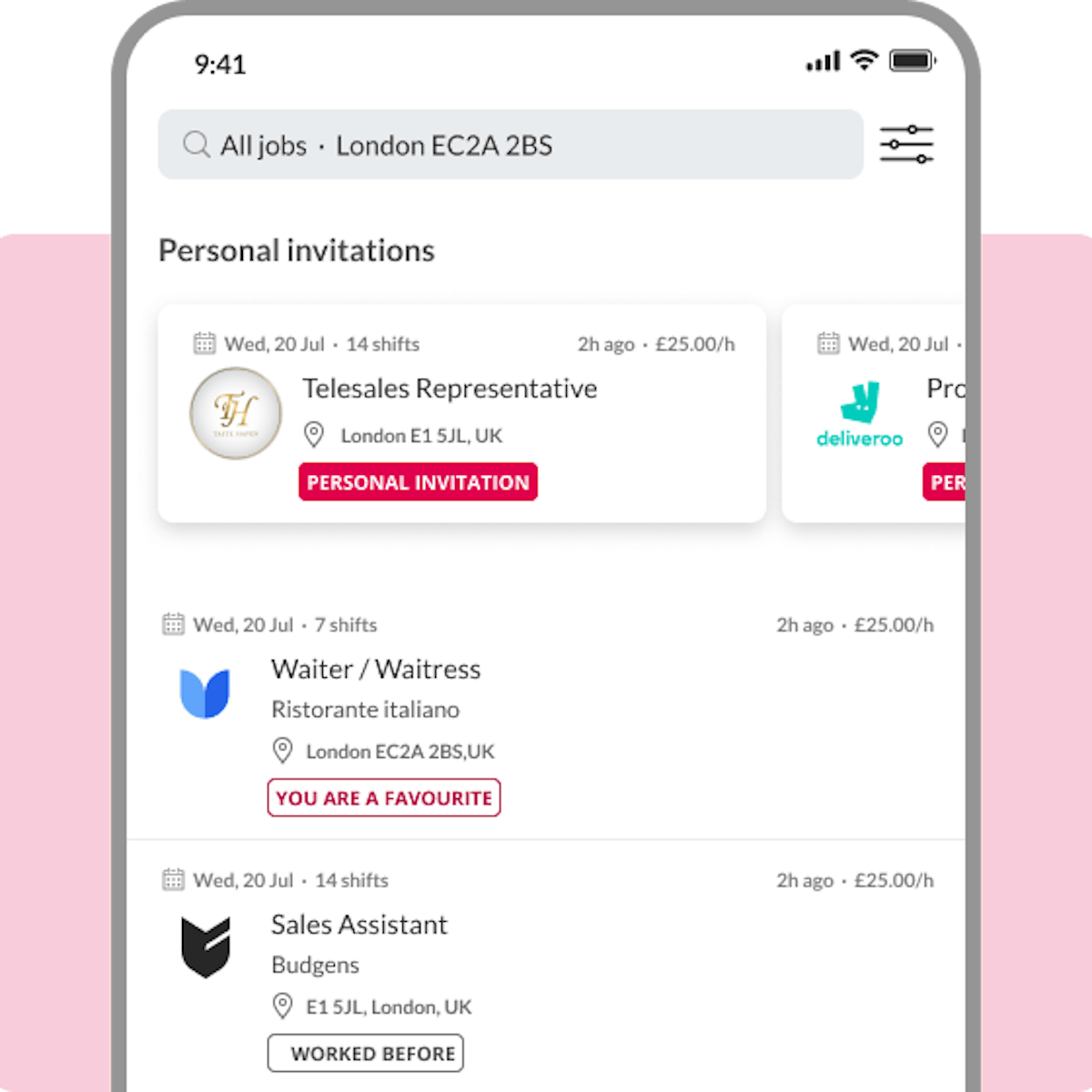 Sobald du dich auf einen Job bewirbst, erscheint dein Arbeitnehmerprofil in der Liste der Bewerber und der Einsatzbetrieb kann dich mit einem Klick anstellen. Wir geben dir Bescheid, ob du angestellt wurdest und erinnern dich an alle wichtigen Informationen bezüglich deiner Schicht(en), bevor sie beginnen.