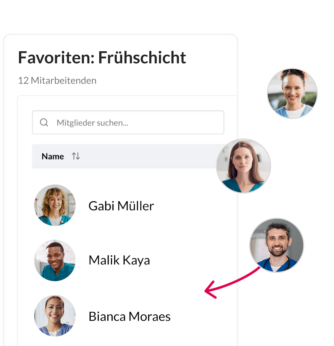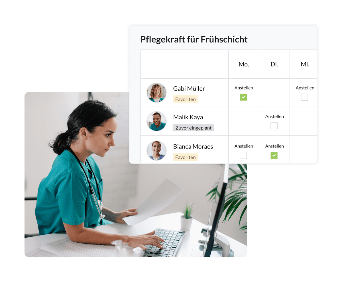 Durch eine intelligente Schichtaufteilung können Sie Personalressourcen gezielt einsparen und gleichzeitig die Qualität der Pflege erhöhen. Nutzen Sie flexibles Personal, um auf tagesabhängige Nachfragespitzen zu reagieren und entlasten Sie Ihr Kernteam genau dann, wenn Bewohner und Patienten die grösste Aufmerksamkeit benötigen. Damit schaffen Sie Stabilität und sparen Kosten.