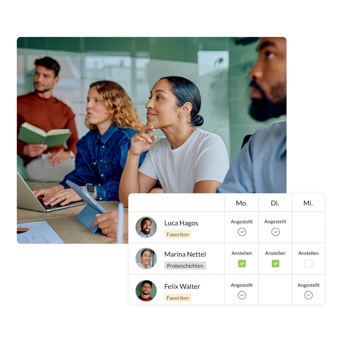 Mit Try & Hire testen Sie Mitarbeitende im Arbeitsalltag, bevor Sie eine Festanstellung eingehen. So reduzieren Sie Fehlbesetzungen und gewinnen mehr Sicherheit in Ihrer Personalplanung.