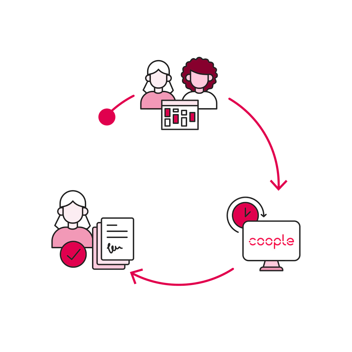 Sie entscheiden sich nur für eine Übernahme, wenn die Person fachlich und menschlich passt. Währenddessen übernimmt Coople die Anstellung und Administration, Sie behalten die volle Kontrolle über Auswahl und Einsatzplanung.